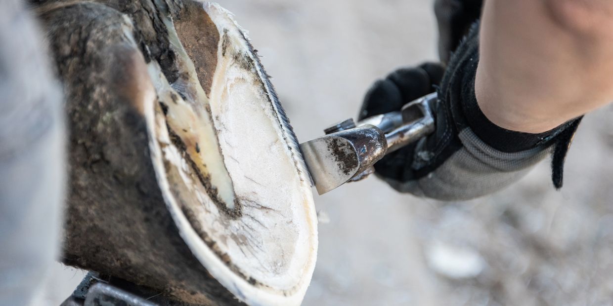 There are many options aside from metal shoes, including glue-on shoes and boots. Another option we like is Hoof Armor. This is a non-toxic, antimicrobial, inert material that is thinly spread on the bottom of the hoof from the wall to the frog. It protects the sole, limits abrasive wear, strengthens the hoof, and encourages healthy and more natural hoof growth. It is currently being used by horses at many levels from eventing to endurance riding. It is much cheaper than metal shoes and provides all the benefits of going barefoot while mitigating the disadvantages of metal shoes.